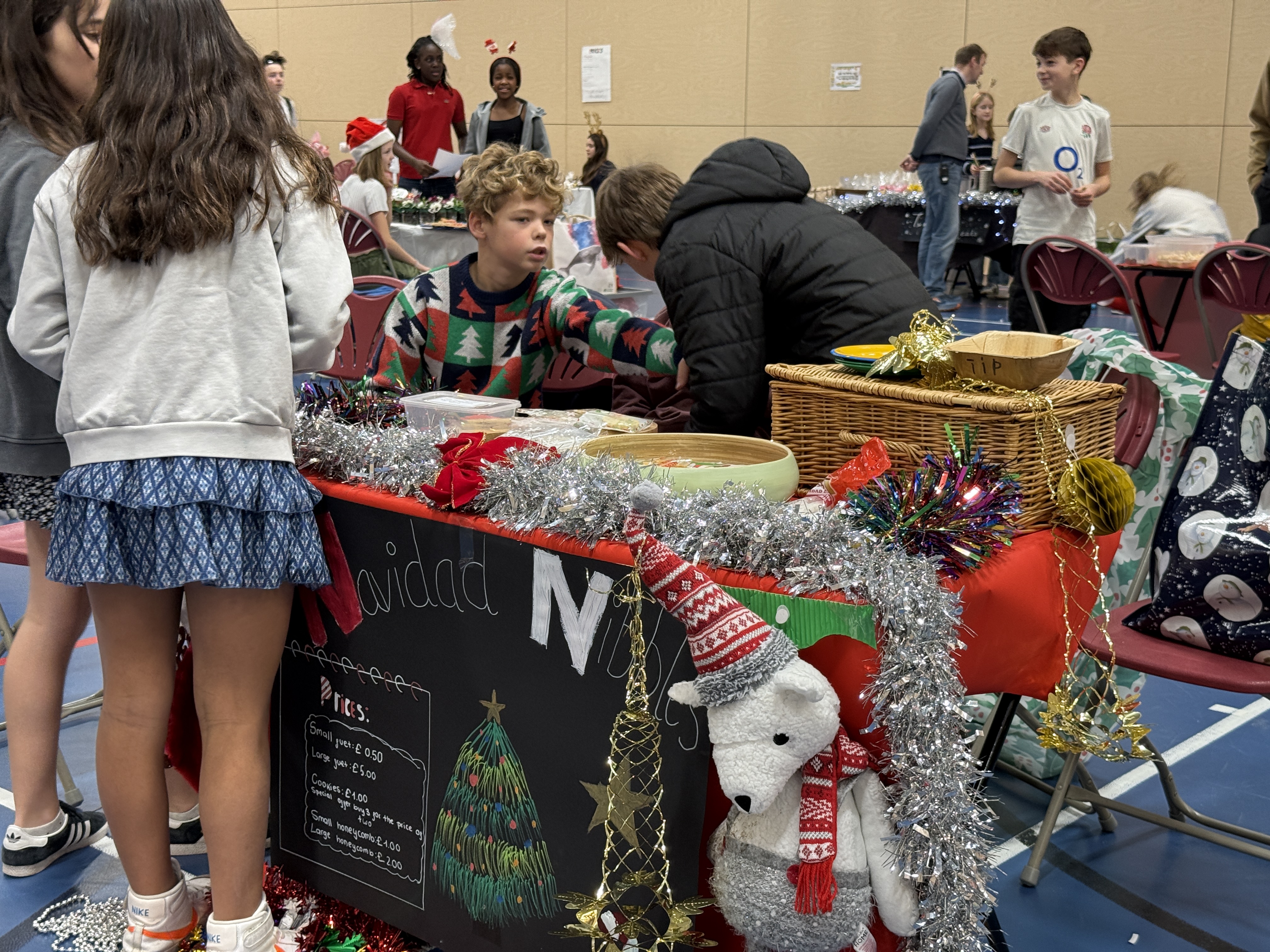 Our Christmas fair on Saturday was one of the best yet. Years 7 & 8 Diploma companies filled the sports hall with their stalls, games and enthusiasm! They worked incredibly hard under the careful guidance our senior deputy head and took on board advice for active selling and visible marketing. In total, they raised a magnificent £2,630.85 for their chosen charities which is a huge increase on the two previous years.