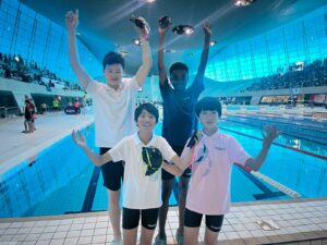 Next up, the girls’ 4×50 metres medley relay. Yet again, they dug deep and finished third in their heat. Unfortunately, we were disqualified in this event due to an illegal turn. However, the girls’ strong swim showed they have the speed and skill to compete at the highest level—a valuable learning experience that will only make them stronger for future competitions and the IAPS qualifier’s in the new year!